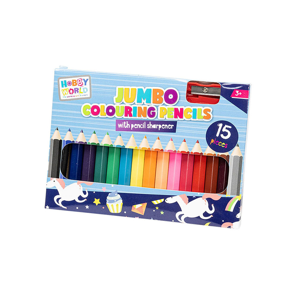 HW190119 JUMBO COLOURING PENCILS WITH SHARPENER 15PK